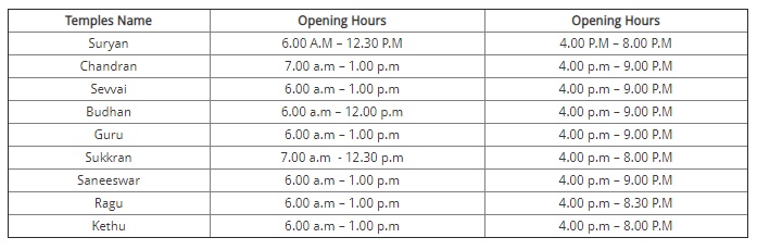 ஸ்தபன மண்டபத்தின் வடபுறத்தில் ஸ்ரீ காசி விஸ்வநாதா்-விசாலாட்சி எழுந்தருளி உள்ளனா். மூலக் கருவறையில்சூரிய பகவான் தன இரு தேவியருடன் காட்சி அளிக்கிறார். சூரியனின் உக்கிரத்தை தணிக்க குரு பகவான் இங்கே நின்ற கோலத்தில் சூரிய பகவானுக்கு எதிரில் எழுந்தருளியுள்ளார். அங்கிருந்து வலப்புறமாகப் படிகளில் இறங்கி சனி, புதன், செவ்வாய், சந்திரன், கேது, சுக்கிரன், ராகு ஆகிய ஏழு கிரகங்களின் சந்நிதி சூரியனைப் பார்த்து அமைந்துள்ளது சிறப்பாகும்.